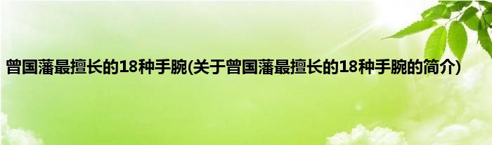 本文关于曾国藩最擅长的18种手腕的简介就讲解完毕,希望对大家有所帮助。