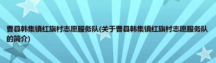 本文关于曹县韩集镇红旗村志愿服务队的简介就讲解完毕,希望对大家有所帮助。