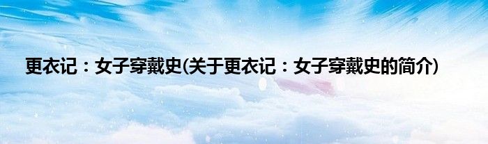 本文关于更衣记:女子穿戴史的简介就讲解完毕,希望对大家有所帮助。