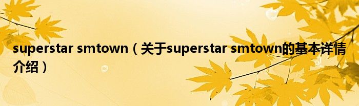 本文关于superstar smtown的基本详情介绍就讲解完毕,希望对大家有所帮助。