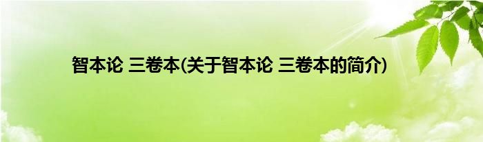 本文关于智本论 三卷本的简介就讲解完毕,希望对大家有所帮助。