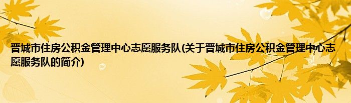 本文关于晋城市住房公积金管理中心志愿服务队的简介就讲解完毕,希望对大家有所帮助。