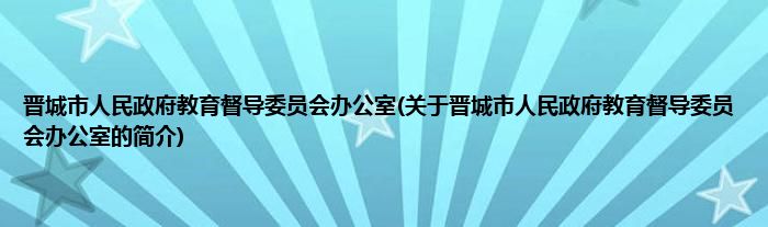 本文关于晋城市人民政府教育督导委员会办公室的简介就讲解完毕,希望对大家有所帮助。