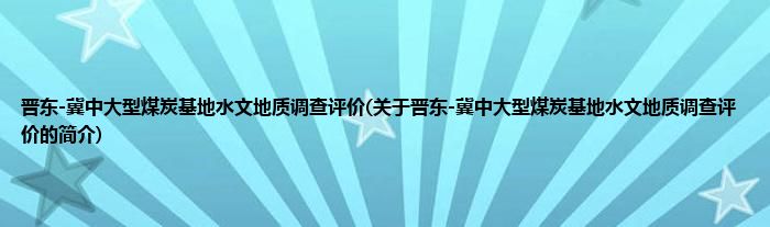 本文关于晋东-冀中大型煤炭基地水文地质调查评价的简介就讲解完毕,希望对大家有所帮助。