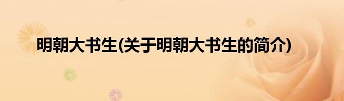 大家好,明朝大书生,关于明朝大书生的简介很多人还不知道,现在让我们一起来看看吧!