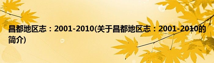 本文关于昌都地区志:2001-2010的简介就讲解完毕,希望对大家有所帮助。