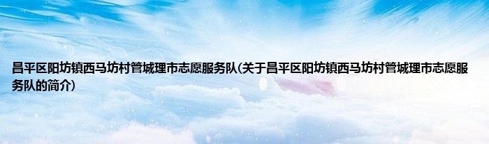 本文关于昌平区阳坊镇西马坊村管城理市志愿服务队的简介就讲解完毕,希望对大家有所帮助。