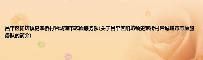本文关于昌平区阳坊镇史家桥村管城理市志愿服务队的简介就讲解完毕,希望对大家有所帮助。
