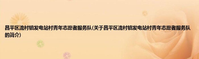 本文关于昌平区流村镇发电站村青年志愿者服务队的简介就讲解完毕,希望对大家有所帮助。