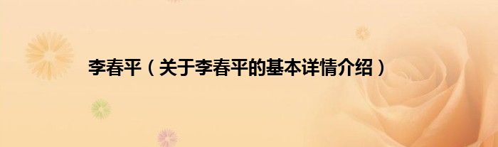 李春平(关于李春平的基本详情介绍)