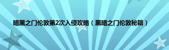 大家好,精选小编来为大家解答以上问题。暗黑之门伦敦第2次入侵攻略,黑暗之门伦敦秘籍很多人还不知道,现在让我们一起来看看吧!