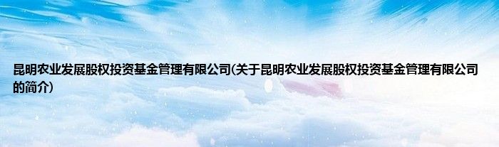 大家好,昆明农业发展股权投资基金管理有限公司,关于昆明农业发展股权投资基金管理有限公司的简介很多人还不知道,现在让我们一起来看看吧!