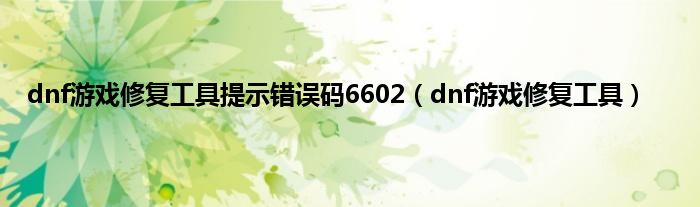 大家好,精选小编来为大家解答以上问题。dnf游戏修复工具提示错误码6602,dnf游戏修复工具很多人还不知道,现在让我们一起来看看吧!