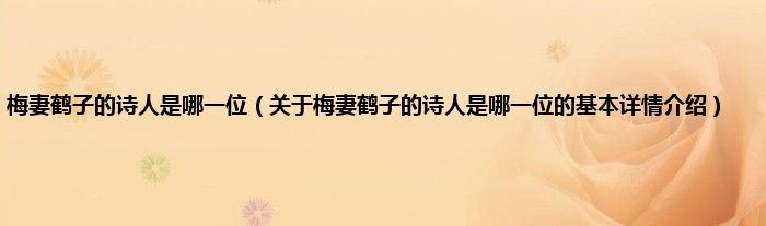 本文关于梅妻鹤子的诗人是哪一位的基本详情介绍就讲解完毕,希望对大家有所帮助。