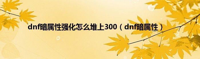 大家好,精选小编来为大家解答以上问题。dnf暗属性强化怎么堆上300,dnf暗属性很多人还不知道,现在让我们一起来看看吧!