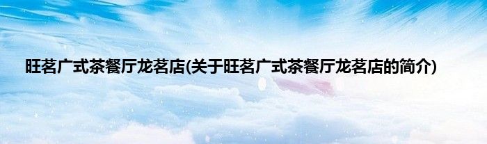 大家好,旺茗广式茶餐厅龙茗店,关于旺茗广式茶餐厅龙茗店的简介很多人还不知道,现在让我们一起来看看吧!