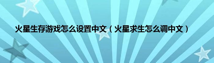 大家好,精选小编来为大家解答以上问题。火星生存游戏怎么设置中文,火星求生怎么调中文很多人还不知道,现在让我们一起来看看吧!