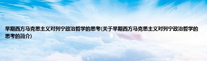大家好,早期西方马克思主义对列宁政治哲学的思考,关于早期西方马克思主义对列宁政治哲学的思考的简介很多人还不知道,现在让我们一起来看看吧!