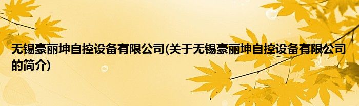 本文关于无锡豪丽坤自控设备有限公司的简介就讲解完毕,希望对大家有所帮助。