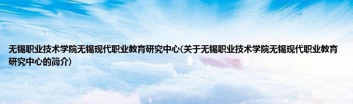 本文关于无锡职业技术学院无锡现代职业教育研究中心的简介就讲解完毕,希望对大家有所帮助。