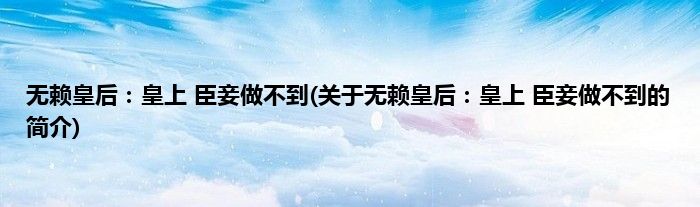 大家好,无赖皇后:皇上,臣妾做不到,关于无赖皇后:皇上,臣妾做不到的简介很多人还不知道,现在让我们一起来看看吧!