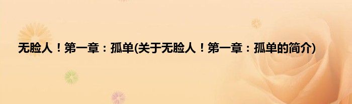 大家好,无脸人!第一章:孤单,关于无脸人!第一章:孤单的简介很多人还不知道,现在让我们一起来看看吧!