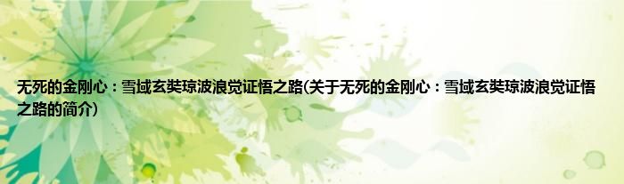 大家好,无死的金刚心 : 雪域玄奘琼波浪觉证悟之路,关于无死的金刚心 : 雪域玄奘琼波浪觉证悟之路的简介很多人还不知道,现在让我们一起来看看吧!