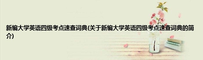 本文关于新编大学英语四级考点速查词典的简介就讲解完毕,希望对大家有所帮助。