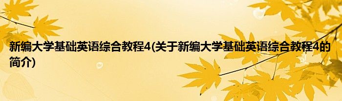 1、 《新编大学基础英语综合教程4》是2010年高等教育出版社出版的图书。