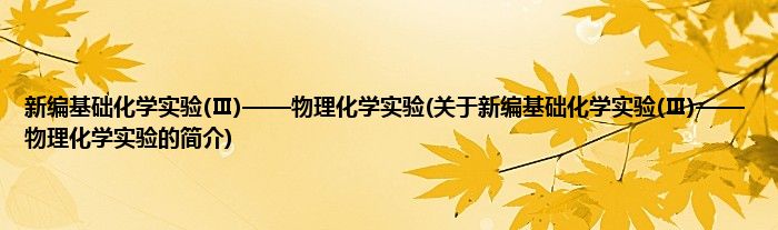 本文关于新编基础化学实验(Ⅲ)——物理化学实验的简介就讲解完毕,希望对大家有所帮助。