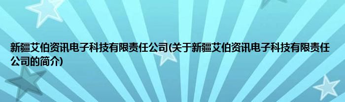 本文关于新疆艾伯资讯电子科技有限责任公司的简介就讲解完毕,希望对大家有所帮助。