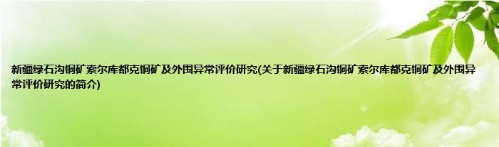 本文关于新疆绿石沟铜矿索尔库都克铜矿及外围异常评价研究的简介就讲解完毕,希望对大家有所帮助。