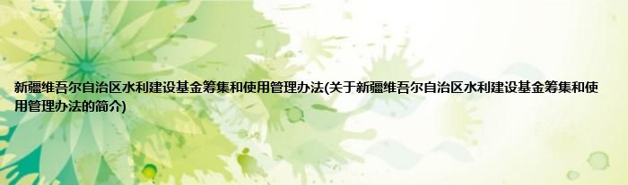 大家好,新疆维吾尔自治区水利建设基金筹集和使用管理办法,关于新疆维吾尔自治区水利建设基金筹集和使用管理办法的简介很多人还不知道,现在让我们一起来看看吧!
