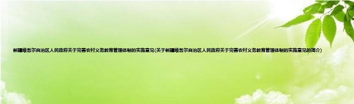 大家好,新疆维吾尔自治区人民政府关于完善农村义务教育管理体制的实施意见,关于新疆维吾尔自治区人民政府关于完善农村义务教育管理体制的实施意见的简介很多人还不知道,现在让我们一起来看看吧!