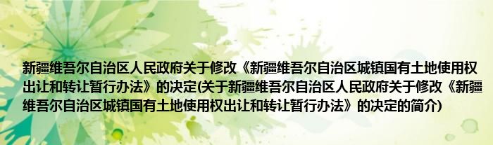 本文关于新疆维吾尔自治区人民政府关于修改《新疆维吾尔自治区城镇国有土地使用权出让和转让暂行办法》的决定的简介就讲解完毕,希望对大家有所帮助。