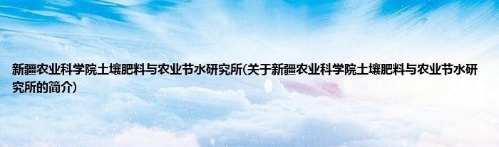 大家好,新疆农业科学院土壤肥料与农业节水研究所,关于新疆农业科学院土壤肥料与农业节水研究所的简介很多人还不知道,现在让我们一起来看看吧!