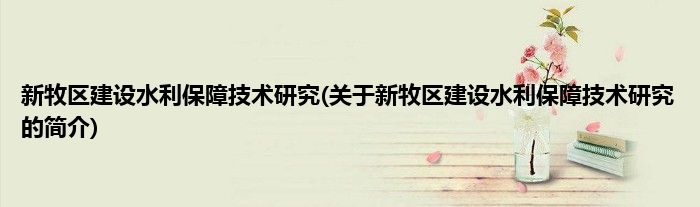 本文关于新牧区建设水利保障技术研究的简介就讲解完毕,希望对大家有所帮助。