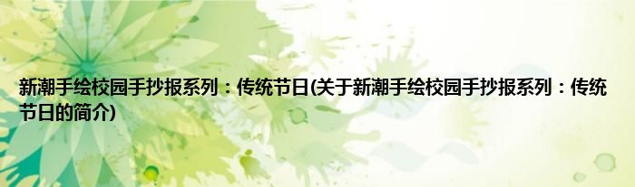 大家好,新潮手绘校园手抄报系列:传统节日,关于新潮手绘校园手抄报系列:传统节日的简介很多人还不知道,现在让我们一起来看看吧!