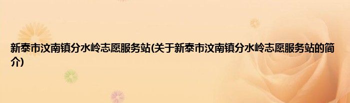 本文关于新泰市汶南镇分水岭志愿服务站的简介就讲解完毕,希望对大家有所帮助。