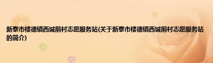 本文关于新泰市楼德镇西城前村志愿服务站的简介就讲解完毕,希望对大家有所帮助。