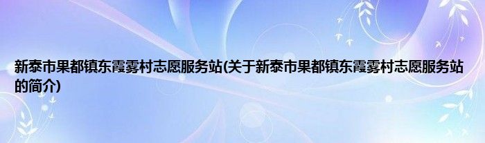 本文关于新泰市果都镇东霞雾村志愿服务站的简介就讲解完毕,希望对大家有所帮助。