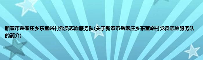 1、 新泰市岳家庄乡东堂峪村党员志愿服务队是由新泰市党员志愿服务总队领导下的志愿团体。