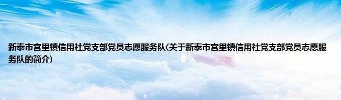 1、 新泰市宫里镇信用社党支部党员志愿服务队是由新泰市党员志愿服务总队领导下的志愿团体。