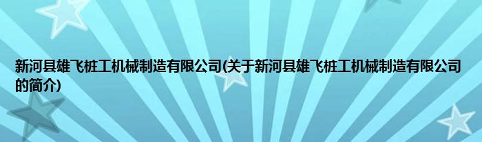 本文关于新河县雄飞桩工机械制造有限公司的简介就讲解完毕,希望对大家有所帮助。