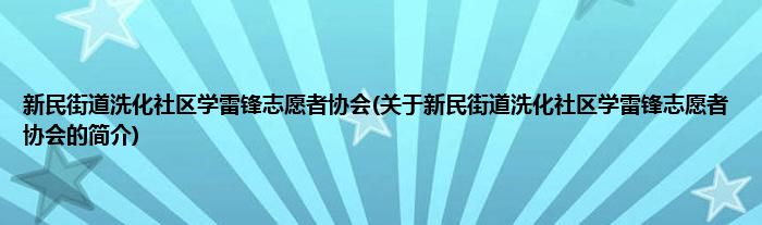 本文关于新民街道洗化社区学雷锋志愿者协会的简介就讲解完毕,希望对大家有所帮助。