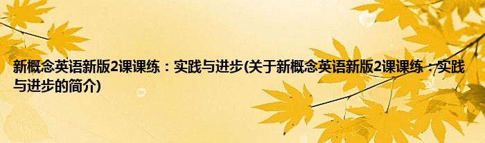 大家好,新概念英语新版2课课练:实践与进步,关于新概念英语新版2课课练:实践与进步的简介很多人还不知道,现在让我们一起来看看吧!