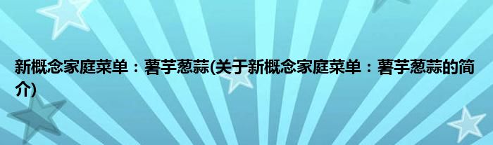新概念家庭菜单:薯芋葱蒜(关于新概念家庭菜单:薯芋葱蒜的简介)
