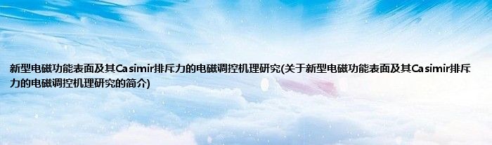 新型电磁功能表面及其Casimir排斥力的电磁调控机理研究(关于新型电磁功能表面及其Casimir排斥力的电磁调控机理研究的简介)