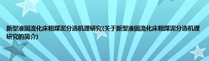 本文关于新型液固流化床粗煤泥分选机理研究的简介就讲解完毕,希望对大家有所帮助。