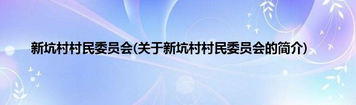 本文关于新坑村村民委员会的简介就讲解完毕,希望对大家有所帮助。